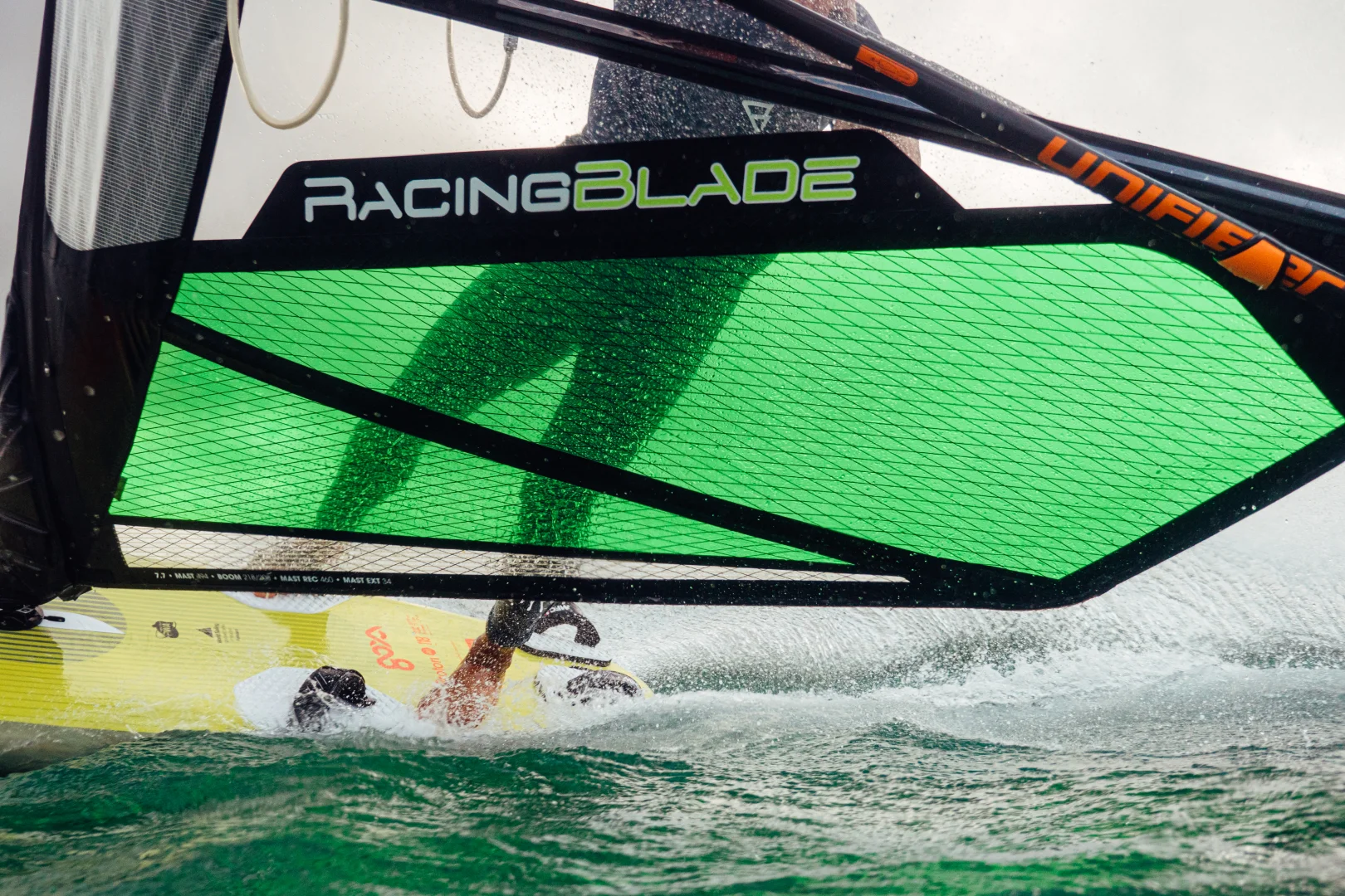The Racingblade's efficient airflow is achieved by a uniquely constructed ultra-low drag mast pocket. Each of its three layers are tensioned by the tack pulley webbing, inducing a clean and firm leading edge.