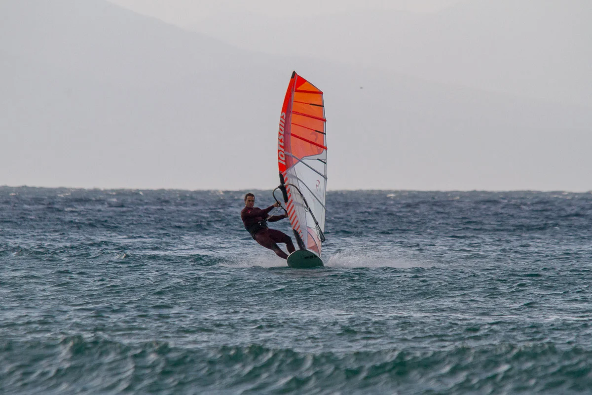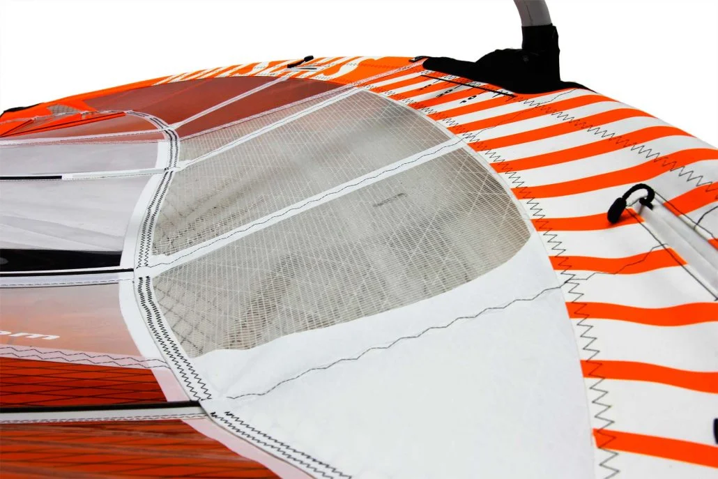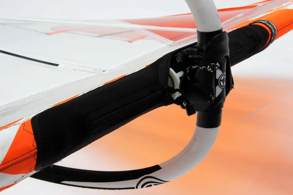 - Streamlined neoprene boom cutout with dual zippers – limits water entry into the mast sleeve during falls, keeping the rig light for a fast recovery
